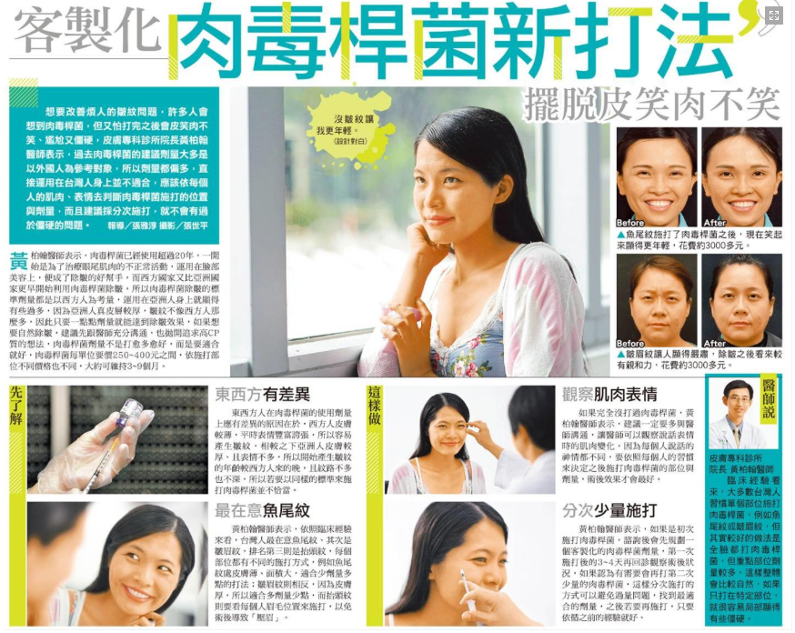 【蘋果日報:客製化肉毒桿菌新打法 擺脫皮笑肉不笑】